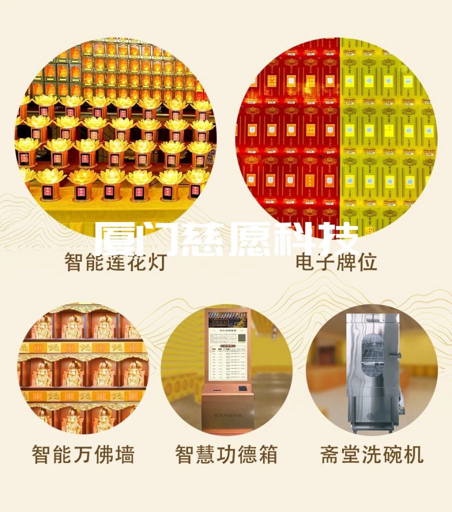 廈門慈愿網絡科技有限公司成立于2012年03月,長期服務于傳統民俗文化產業,集設計、生產、研發和銷售為一體,致力于成為行業內領先的信息化技術服務提供商。結合前沿的人工智能和互聯網技術,為寺院量身打造寺院信息管理系統(包括掛單管理、牌位管理、牌位打印系統、電子牌位、智能蓮花燈、電子功德箱等)、智慧祈福燈(智能萬佛墻、千佛墻、光明燈)、智能骨灰存放架等產品,為廠家及經銷商提供佛具用品交易平臺全方位的信息技術解決方案。