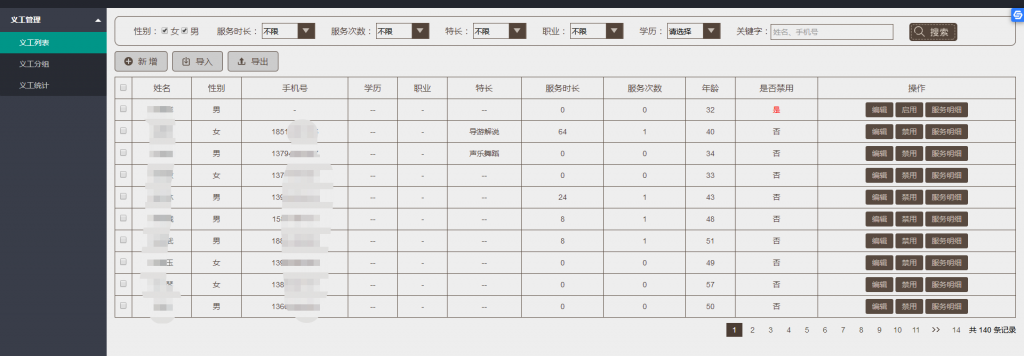寺院管理軟件的義工管理功能包含義工列表,義工分組,義工統(tǒng)計,每個功能可以幫助寺院管理人員快速登記、查找和分析相關(guān)義工人員,工作安排可以通過微信信息直接促達,省時省力管理義工人員。